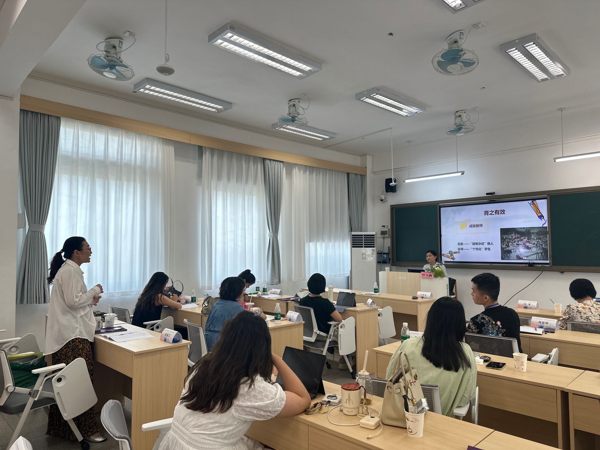 此外,课程还涵盖教师专业成长路径、跨学科教学实践、论文写作与成果积累等实用内容,并以“一线教师谈成长、一线教师聊课堂”圆桌论坛收尾,让学员在经验分享中碰撞思维、凝聚共识。培训期间,学员们主动参与课堂互动、课后研讨,每天结合教学实际撰写反思,将所学快速转化为教学思路。