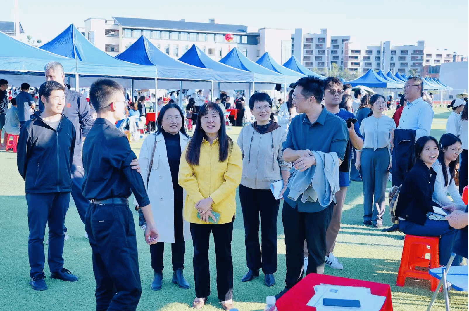 学校党委书记、行政负责人丘毅清带队走访招聘会现场