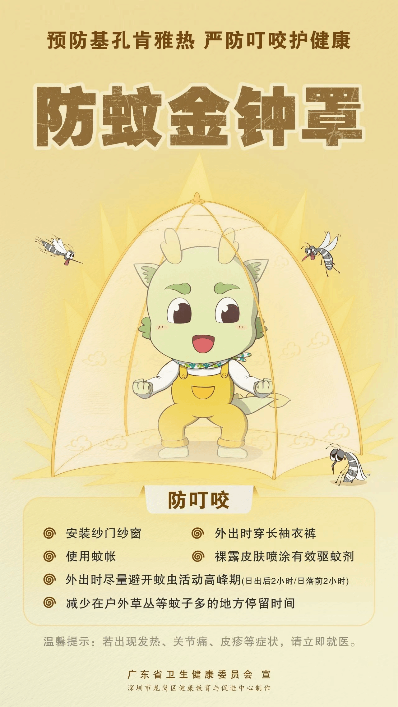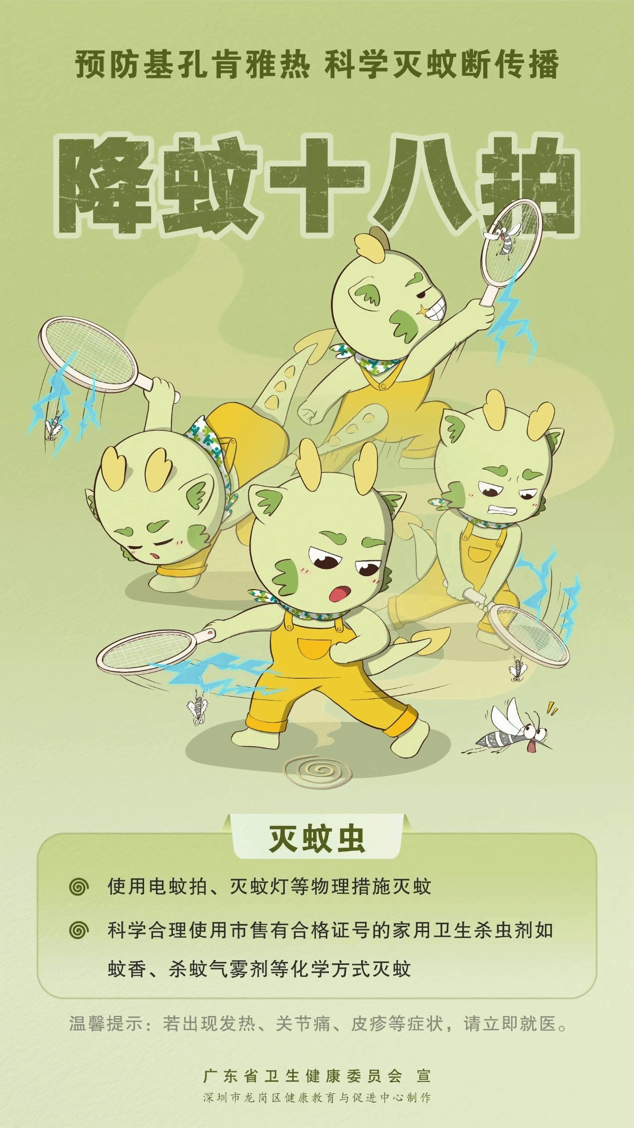 预防基孔肯雅热 你知道要怎么做吗? “积水大挪移”“降蚊十八拍”“防蚊金钟罩” 这些“硬招”一定要学会! 赶紧收好这份防控“秘籍”海报 马上学起来吧!