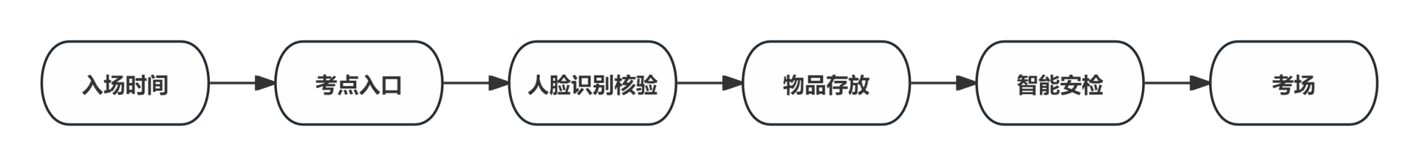 6.考场:进入考场时,请出示本人有效身份证件、准考证,两证齐全才可进入,同时接受监考员金属探测仪检查。